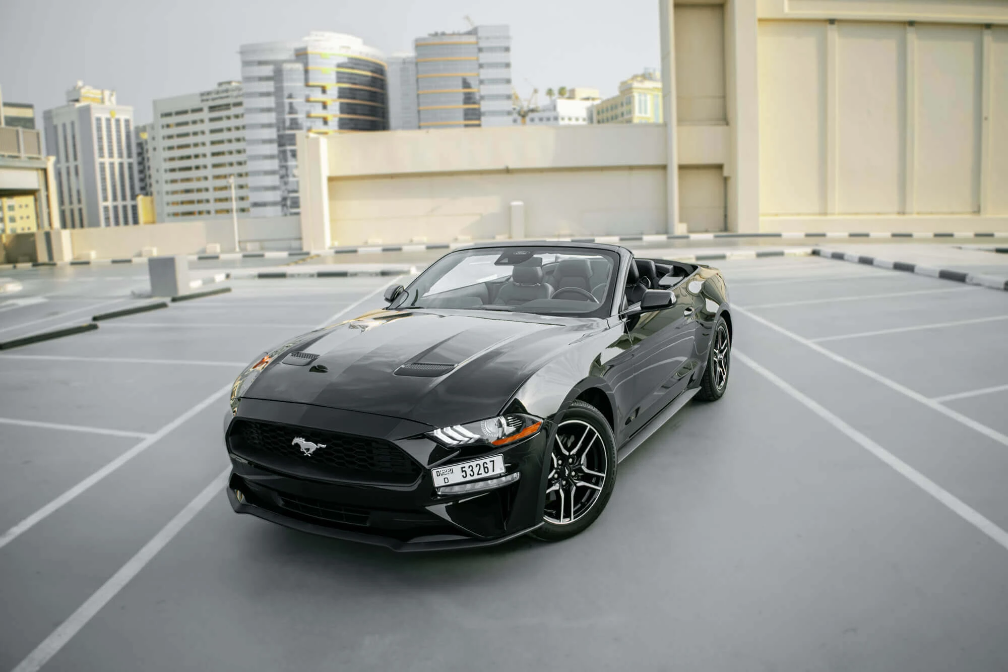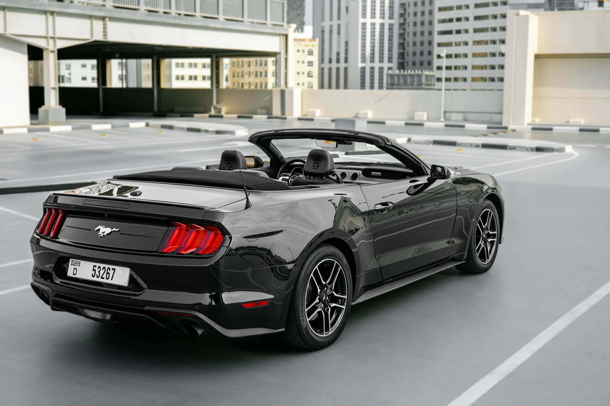 - Rent the Black Mustang Convertible (V4 EcoBoost) and experience the ultimate blend of power, style, and freedom. Contact Dubai Luxury Rental Cars today!
