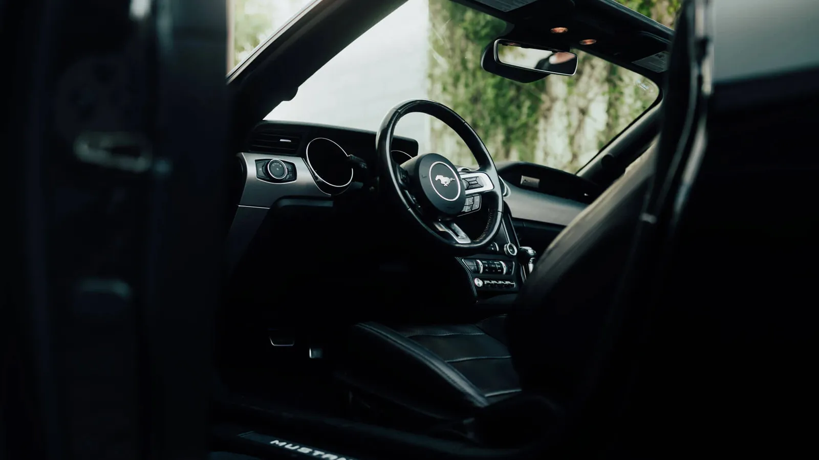 - Design: Sleek black exterior with iconic Mustang styling, LED lighting, and a muscular profile.