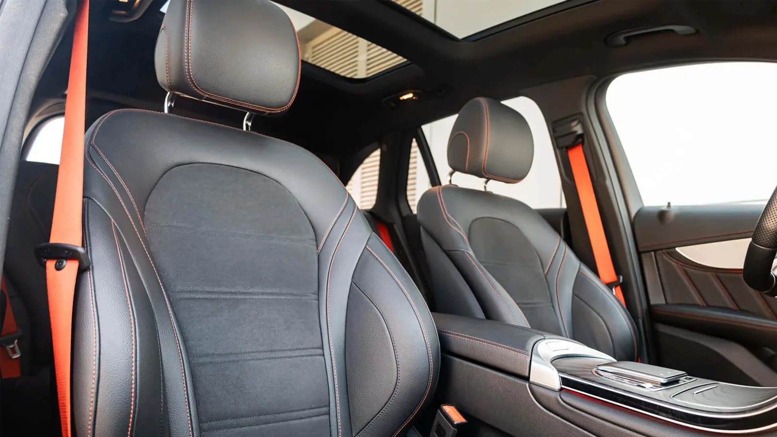 - Luxurious Interior: AMG sport seats with yellow stitching, carbon fiber trim, and customizable ambient lighting.